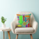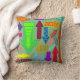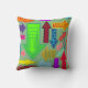 Este travesseiro decorativo tem um design de setas em várias cores com diferentes padrões.