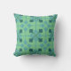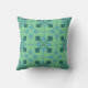 Este travesseiro decorativo tem uma design de flechas moderna do século médio em dois tons de azul num campo de verde-mar.