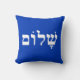 Simples design de texto dizendo Shalom em hebraico com letra branca em um azul escuro do céu.