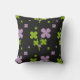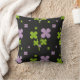 Padrão floral uniforme original, shamrocks verdes e roxos de sorte em fundo preto.