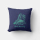 Travesseiro decorativo estético de praia de dupla face com belos contornos de concha e texto personalizado facilmente editável sobre fundo branco de um lado, e o mesmo padrão com cor turquesa sobre fundo de cor de marinho pelo LakeIsland.