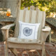 Um travesseiro tradicional de decoração de praia com fronteira quadrada e casca de solário central a partir de uma gravura antiga.