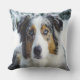 Um lindo cão-pastor australiano na neve de inverno neste maravilhoso travesseiro decorativo.