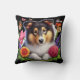 Almofada Shetland Sheepdog com Flores e Borboletas