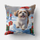 Almofada Shih Tzu correndo em neve com chapéu de Natal