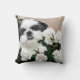 Shih preto e branco Tzu enfrenta a vista bonito como pode estar dentro com o travesseiro decorativo dos amantes do cão dos rosas brancos