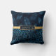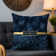Travesseiros decorativos de Nome Floral Tropical do Shimmer de Impressão Leopardo Azul apresentam um elegante padrão de impressão leopardo azul e preto e um padrão floral tropical com seu nome personalizado no centro de uma banda dourada. Personalize editando o texto nas caixas de texto. Projetado para você por ©Evco Studio www.zazzle.com/store/evcostudio