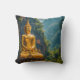 This stunning artwork captures a colossal Golden Buddha statue seated in deep meditation, set against a dramatic backdrop of lush Thai jungle cliffs. The vibrant gold of the statue radiates warmth, contrasting beautifully with the deep emerald greens and misty blues of the towering limestone karsts and dense foliage. The gentle light illuminating the scene creates an atmosphere of profound tranquillity and spiritual power.
