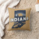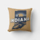 Na moda travesseiro decorativo apresenta uma silhueta de estado cênico retrô de Indiana sobre fundo marrom-claro.