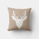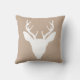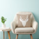 A design original da silhueta branca de Destei de uma cabeça de veado com grandes galhadas em uma cor de fundo bege.