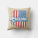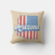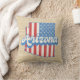 O travesseiro decorativo na moda apresenta as estrelas e faixas dos EUA, a silhueta de estado de Arizona cheia, com texto retrorado, sobre fundo de burlap faux light.