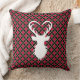 Silhueta de renas em Travesseiro decorativo vermelho e preto. As listras pretas têm um toque de estilo rústico.