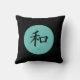 Travesseiro decorativo apresenta um símbolo de caligrafia kanji japonês simples para Paz em aqua round.