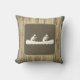 Travesseiros decorativos temáticos russos e aventuras com símbolo de canoa, como aqueles que veem ao longo da estrada ou na estrada. Silhueta branca de duas pessoas a fazer canoagem a castanho, com fundo de madeira envelhecido