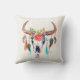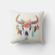 Ilustração colorida do crânio de cor d'água com símbolos indianos. Modelo de travesseiro decorativo personalizável