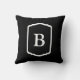 This black throw pillow has an initial that you can change to show the correct monogram. The letter is white and is framed.
