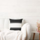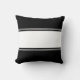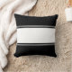 Uma faixa branca larga atravessa o centro deste travesseiro preto, criando uma faixa preta larga no topo e no fundo. Essas listras pretas e brancas estão acima e abaixo da larga faixa branca. O travesseiro tem um esquema clássico de cor preto-e-branco.