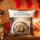 Travesseiro decorativo de Foto Moderno Simples Feliz Natal 2. Travesseiro de Natal com foto personalizada. Adicione 2 fotos de feriado favoritas na frente e no verso do travesseiro. Você também pode alterar ou apagar o texto na frente e no verso.