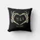 Comemore o seu dia de casamento com este travesseiro decorativo personalizado. A frente tem uma ilustração de mãos esqueléticas em forma de coração, enquadrando suas iniciais com sua data de casamento abaixo. O gráfico e o texto estão em creme ou marfim contra fundo preto. O verso está pronto para ser personalizado com sua foto.