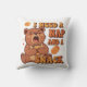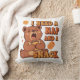 A soft square pillow inspired by sleepy days and snack-time priorities.