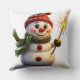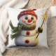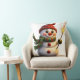 Um boneco de neve festivo adorava com um chapéu vermelho e cachecol durante um inverno de neve.