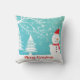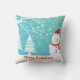 Linda ilustração de Natal de árvores de neve, boneco de neve e flocos de neve abstrato. design de texto. Modelo de travesseiro decorativo personalizável