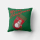 Uma fotografia de uma meia vermelha e verde com um adorável boneco de neve vestido com um lenço de xadrez sazonal e um chapéu colocado sobre um design de fundo verde está no cobrir de ambos os lados deste travesseiro decorativo. Deixe-o como está ou clique em Personalizar para adicionar texto como um nome de família ou uma cotação. Em personalizar, você também pode selecionar uma cor de fundo diferente de verde em ambos os lados.