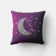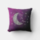 Sobre o chá de fraldas da lua com lua de prata e estrelas contra um fundo negro e rosa do céu noturno roxo