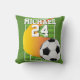 Este travesseiro temático de futebol é perfeito para o jogador de futebol em sua vida. É excelente para meninos ou meninas, e é personalizável para os jogadores primeiro nome e número de camisa. Uma bola de futebol flamejante é expulsa do campo de futebol!