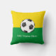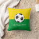 A soccer ball on yellow and green background. Custom throw pillows. Edit name to customize.