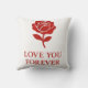 This pillow shows a sweet rose with a soft forever message.