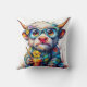 A soft summery yak pillow featuring a playful, vibrant, and whimsical artwork, featuring a cute yak with oversized glasses and a summer outfit, refreshingly sipping a juice. The bright colors and cheerful details convey a sense of summer and joy in every touch.