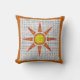 Um mosaico brilhante, um sol laranja e amarelo adornam este travesseiro decorativo do estilo sudoeste. Um grande quadrado no centro suporta este sol monossaico, que é um perfeito elogio à sua sala de estar ou ao seu quarto O quadro sólido de fundo pode ser mudado para qualquer cor que você queira que lhe permita coordenar com o tema de cor da sua sala.