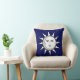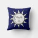 Conjunção do Sol Branco e da Lua Prateada no Travesseiro azul marinho. Conjunção entre sol e lua significa equilíbrio, equilíbrio e harmonia!