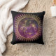 Travesseiro decorativo quadrado com sol dourado e cobertura lua sobre fundo violento celeste violento