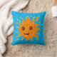 Uma imagem feliz, sorridente e caprichosa do sol sobre um fundo azul. Adicione seu próprio texto no verso.