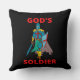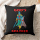 Este travesseiro decorativo tem as palavras Soldado de Deus em uma impressão ousada mais letras vermelhas com um soldado em braço cheio ou segurando uma espada mais escudo no centro com um tema baseado na fé. Este travesseiro é feito com tecido simples de alta qualidade nossos travesseiros são macios e sem rugas, o cobrir é lavável por máquina.
