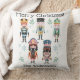 Este travesseiro decorativo de Natal apresenta um tema clássico do soldado de brinquedo nutcracker. Cinco bolachas de estilo de safra diferentes são impressas em um design de pintura a aquarela, e acentuadas com ramos de inverno e flocos de neve. Uma saudação de "Feliz Natal" é impressa no topo, com um nome de família de amostra impresso no final. Você pode personalizar o travesseiro para incluir seu próprio nome personalizado ou texto.