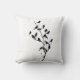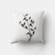 Este travesseiro preto e branco caracteriza as silhuetas dos grackles empoleirados em um ramo de árvore.