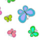 Borboletas divertidas em estilo de arte popular multicolorido voam sobre este doce fundo de faixa rosa e branca.