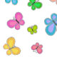 Borboletas multicoloridas em estilo de arte popular flutuam sobre um charmoso fundo listrado de rosa e branco. Personalize com um nome ou mensagem!