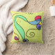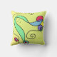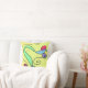Este travesseiro astuto tem um desenho de roda de uma senhora que dorme, sonhando doce. O fundo é chartreuse com pastels brilhantes e linhas pretas para o contraste.
