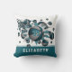 Este legal travesseiro decorativo de basquete apresenta uma "explosão" de esferas de basquete de tamanho variado com tetos e cinzas coloridas alternadas e em forma de lacre, cinza e estrela branca - personalize com o nome do atleta, monograma e número de camisa na frente e no verso - katz_d_zynes