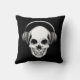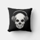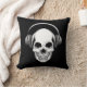 Refrigere o travesseiro decorativo feito sob encomenda preto com um crânio de arreganho do vetor com fones de ouvido. Um presente legal impressionante para adolescentes, góticos e melómanos pela caixa da arte do vetor e pela fábrica do t-shirt.