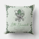 Este elegante travesseiro decorativo de chá de fraldas verde "Lucky Little Shamrock", neutro em termos de gênero, apresenta uma carruagem vitoriana irlandesa desenhada à mão, enfeitiçada em tons verdes macios e cercada por shamrocks verdes de sorte, todos sobre um elegante fundo verde-suave. Impresso na frente.