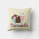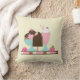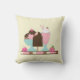 Travesseiro com um tema de sorvete doce. Ilustrado com um bar de sorvete de chocolate, sundae de 3 colheres com uma cereja no topo, e um float de morango com chantilly. Pequenos morangos e cerejas ao longo do fundo. Fundo amarelo pálido. Refrescando curativos de tempo quente.