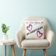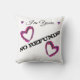 Deixe que alguém especial saiba como você se sente sobre eles com este design travesseiro caprichoso. O texto "Eu sou seu" pode ser personalizado com um nome ou uma mensagem especial. A parte de trás do travesseiro tem um fundo roxo, com um padrão cardíaco, que coordena com os corações na frente.