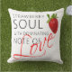 Morango vermelho com folhas verdes e um texto Alma de morango com nota dominante de amor. Um tipo de t-shirts, impressões e presentes para todos. Tema de amor e romance. Travesseiro decorativo para qualquer um. Bom também como Rua, presente de Dia de os namorados.