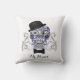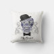 Conheça o Sr. Bones; um crânio de açúcar tão divertido e ornamentado vestindo um chapéu preto, um espetáculo de vidro e um arco de peru. Ele é um encantador em um adorável padrão de ornamentado azul e branco. Um travesseiro decorativo incomum, excelente para um ambiente moderno.