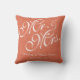 Sr. personalizado e Sra. corais e brancos Casamento Descansar. Design por Elke Clarke©. Disponível em www.zazzle.com/monogramgallery. Fundo de linho (efeito impresso da foto), customizáveis elegantes, personalizados, corais com nomes dos noivos na pia batismal do roteiro e na data brancas do casamento. O design bonito é perfeito para presentes de casamento, travesseiros do querido, presentes do aniversário de casamento e mais. Use editam o menu para mudar cores ou visitar nossa loja para mais design e opções da cor.